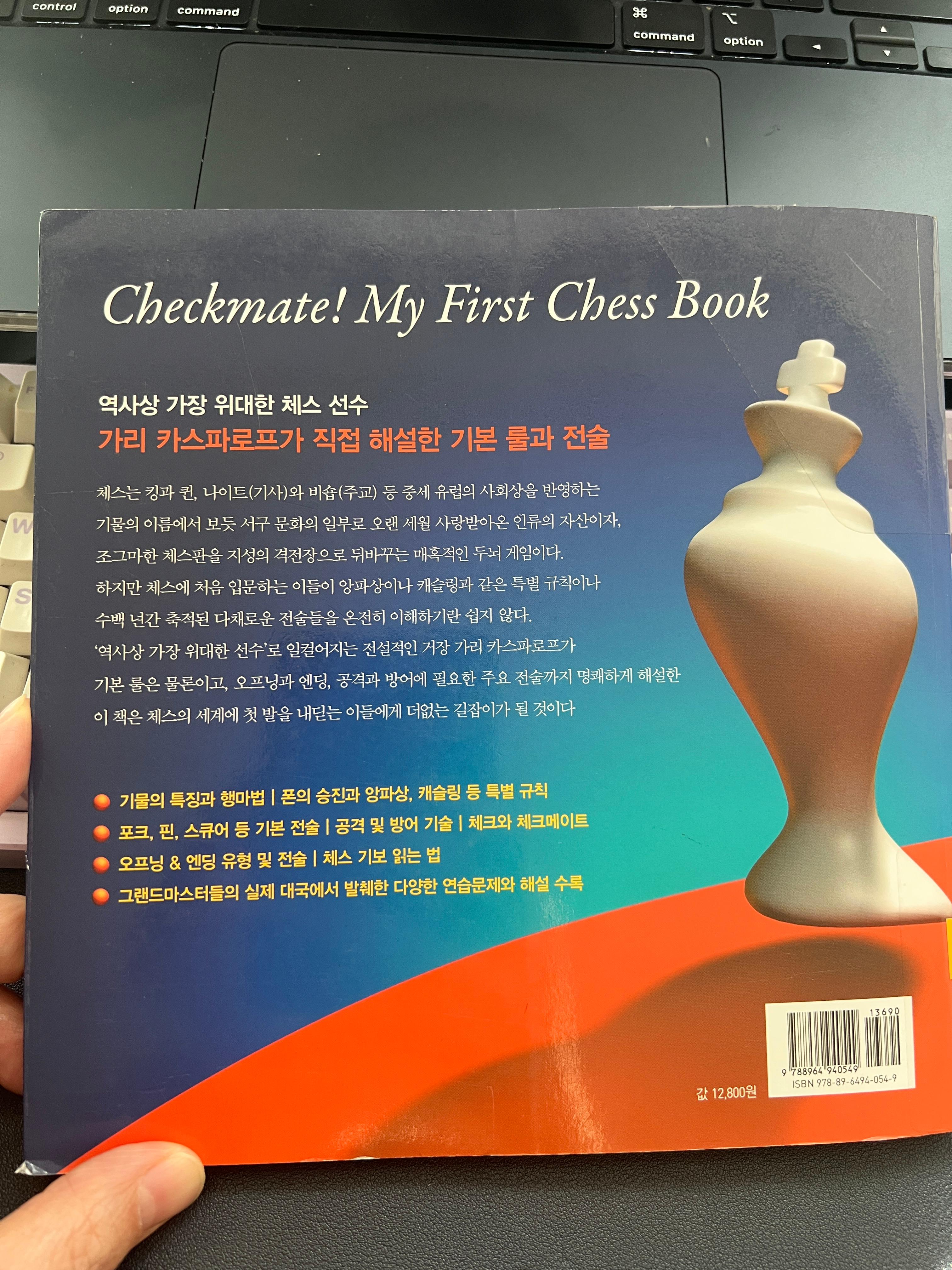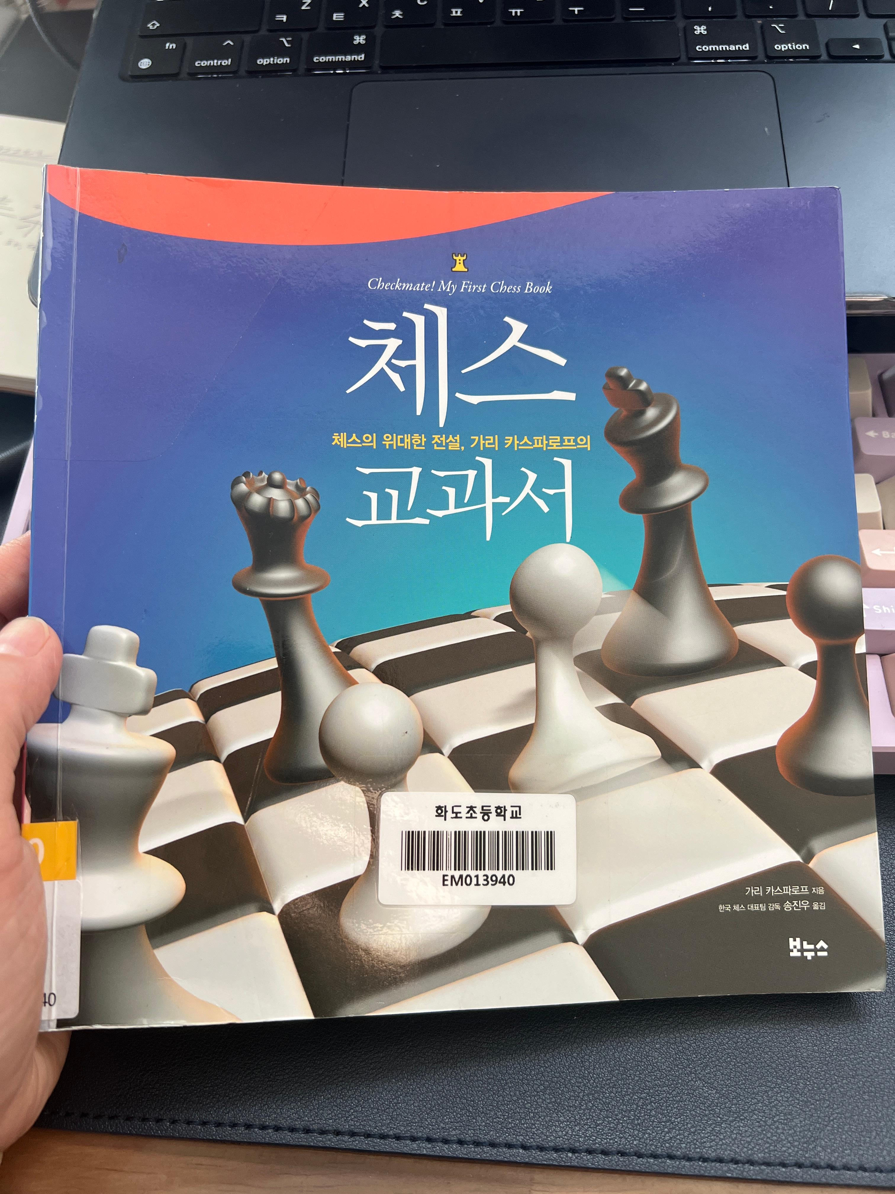 오늘은 학교 도서관에서 [체스 교과서(가리 카스파로프 저 / 보누스 출판)] 책을 대여 해 왔다며