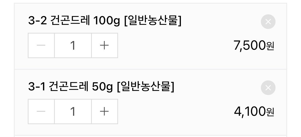 우리 가족은 한 번에 50g 정도가 적당한데 100g 단위가 포장 때문인지 조금 저렴해서 나는 100 짜리들로 구매함.
